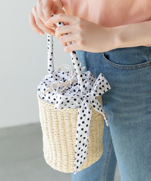 リボンがアクセントをプラスするドットカゴバッグナチュラルな素材感に、ドット柄プリント生地を組み合わせたカゴバッグ。ハンドル部分に結んだリボンが、アクセントをプラスします。マチがあるので収納力も高く、開口部は巾着仕様になっているので中身をカバーできるのも嬉しいポイントです。※撮影時のライティング、PCやスマートフォンの環境により写真の色味が実際の商品と異なって見える場合がございます。ご了承の上お買い求め下さいませ。※モデル着用画像は実際の色と多少異なる場合がございますのでマネキン画像をご確認ください。《 お知らせ 》▼商品のお気に入り登録お気に入りアイテムの値下げ・再入荷・在庫1点などの通知を受け取ることができます。▼ブランドのお気に入り登録新商品や再入荷、セール、クーポン配布などお得な情報を受け取ることができます。
