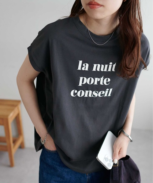 DISCOAT ONLINE LIMITED ITEM トレンドアイテムにも相性抜群なカールロゴTシャツ ●デザイン ベーシックでありながらコーディネートに旬をプラスしてくれる、カールロゴプリントをあしらったデザイン。 女性らしい配色使いに、スッキリとしたフレンチスリーブ、バランスが取りやすい程よくゆったりしたシルエットで幅広く着回しに大活躍間違いなし◎ 季節の変わり目にはジャケットやシャツなどのインナー使いにも万能な一枚です! ●素材 *********************** 洗濯方法:洗濯機洗い(弱) 裏地:なし 透け感:ややあり 伸縮性:ややあり 光沢感:なし 生地の厚さ:やや薄い *********************** ●スタイリング カジュアルスタイルはもちろん、キレイメなスラックス合わせや、ワントーン・モノトーンコーデのアクセント使いにもぴったり◎ パンツスタイルも定番ですが、女性らしくロングスカートやキャミワンピースを合わせた着こなしがオススメです! ●スタッフ着用コメント 157cmスタッフ:ゆったりとしたサイズ感で、ほどよく抜け感のあるカジュアルコーデが楽しめました。 着丈はヒップが軽く隠れるくらいで、インでもアウトでもバランスよく着られる長さです。 163cmスタッフ:ロゴも派手すぎず、シンプルながらしっかりアクセントになってくれるので、1枚で着てもサマになります。 デニムやスラックス、スカートとも相性が良くて、着回し力もばっちりです! 【お取り扱いの注意】 ※着用時、洗濯時は必ず取り扱い表示・タグをご確認の上、お取り扱いください。 【カラー表記について】 システム上の都合により、一部カラー名がサイト表記と異なる場合がございます。