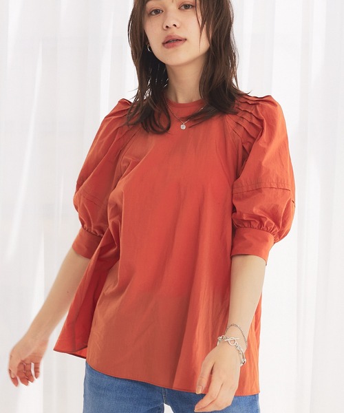 *POINT*立体的なフォルムデザインで一枚で着映えする、清涼ブラウス! 同素材のスカートと合わせてセットアップスタイルも◎ *DESIGN* ボリュームスリーブが今年らしく、肩に施したピンタックがアクセント。 ラグランスリーブでアーム周りがゆったりしているので、夏時期でも快適に着ていただけます。 ボリュームスリーブで甘さがある分、ネックはクルーデザインですっきりとした印象に。 後ろネックは涙開きにし、抜け感を出しています。着丈は長めの設定でイン・アウト両方できていただけます。 *COORDINATE* アウトしてデニムやタイトスカートなど、すっきりボトムで合わせれば、Aラインシルエットがフェミニンな印象に仕上げてくれる大人可愛いスタイルに。 ボトムにインして合わせるとスッキリした印象でエレガントなイメージ。 同素材のスカート(NO.31440070017)と合わせたセットアップスタイルは、夏のお出掛けにおすすめ。 リサイクルナイロン100%のエコ素材。 ナイロンとは思えないナチュラルな風合い・表情感にする為に、経糸は仮燃りのウーリー糸、横糸はナイロンタスラン糸を用いて塩縮加工(ワッシャーのようなシワ感)を施しています。 また軽さと吸放出性があり、シワになり辛く、機能的にも優れた素材です。 手洗い可能。 洗濯:手洗い可