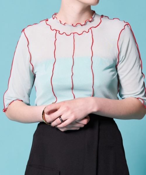 抜け感のコーディネイトには欠かせないトレンドのシアートップス POINT ・配色のカラーメロウが1枚で目を惹く一着 ・高すぎないモックネックがモードな印象に◎ ・ふんわりと柔らかい肌触りのシアー生地を使用 COORDINATE デニムやシンプルなボトムスを合わせるだけで おしゃれなコーディネートに◎ 1枚映えするのでボトムに悩むことなく合わせるだけでOK 柄インナーを透かせての着用からノースリーブや キャミワンピースなどのインナーに合わせて レイヤードアイテムとしてもおすすめ。 合わせ方ひとつで色んなスタイルが楽しめる1枚です。 レディース/トップス/シャツ/インナー/春/夏/秋/きれいめ/シアー/メロウ/透け感/ハイネック/モックネック/レイヤード/パイピング/カラバリ ****************************** 透け感:あり 裏地:なし 伸縮性:あり 光沢感:なし 生地の厚さ:薄め ****************************** ※お取り扱いについては、商品についている 品質表示をご確認下さい。 ※摩擦や(特に湿った状態での摩擦)や 汗や雨などで濡れた時は他の衣類や下着(特に白地)に 色移りする場合がございますので十分ご注意ください。(カラー:黒) ※画像の商品は光の照射や角度により、 実物と色味が異なる場合がございます。 ※デリケートな素材の為、引っ掛かりに注意して下さい。 ■商品のお気に入り登録 お気に入りアイテムの値下げ・再入荷・在庫1点などの 通知を受け取ることができます。 ■ブランドのお気に入り 登録新商品や再入荷、セール、クーポン配布など お得な情報を受け取ることができます。 --------------------------------------------------------------- Solace/ソレイス “MODE”媚びない自分らしいシルエット “CASUAL”シーンレスで手に取りやすいプライス “ART”どこかエッジのある遊び心 トレンドにとらわれず “自分” とマッチするスタイルを提案 ※ご注文いただいた予約商品のお届け時期の確認は、注文履歴ページより行えます。