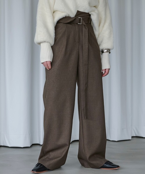 ウエストのデザインがポイントのスラックスハイウエストなので、スタイルアップも叶います◎【商品コメント】・ウエストデザインが特徴的なスラックス・腰の位置を高く見せてくれるので、脚長効果◎・ゆったりシルエットですがフロントにタックが入っているので、ゆるく見えすぎない・何にでも合うので1枚はもっておきたいアイテム【素材】丈夫でしわになりにくい素材。滑らかな質感の風合いで着心地抜群◎※混率は同じですが、新色のグリーン/チャコールグレー/ダークブラウンは少し厚手になります。【コーディネート】ウエストデザインが、ポイントなので、シンプルなトップスにINするだけでコーディネートが決まります。ウエスト部分を折り返しても◎大人のモードスタイルにぴったりのパンツです◎--------------------------------------------------伸縮性/無し厚み/普通裏地/無し透け感/なし---------------------------------------------------※サンプルにて撮影をしておりますので、実際の商品とは色味・仕様や加工・サイズ等が若干異なる場合がございます。予めご了承くださいませ。※商品の取り扱い方法につきましては、タグ等に記載されている「取り扱い上の注意」「洗濯表示」をご確認ください。※屋外での撮影画像は、光の当たり具合で色味が違って見える場合があります。あらかじめご了承ください。なお商品の色味は、スタジオ撮影の画像をご参照ください。 ....................≪INFORMATION≫......................▼ 商品のお気に入り登録 ▼完売カラーの再入荷やラスト1点、またプライスダウンしたセール通知を受け取ることができます。ぜひご登録ください。▼ ブランドのお気に入り登録 ▼新商品や再入荷など、ブランドのお得な情報をいち早く受ける事が出来ます。ぜひご登録ください。