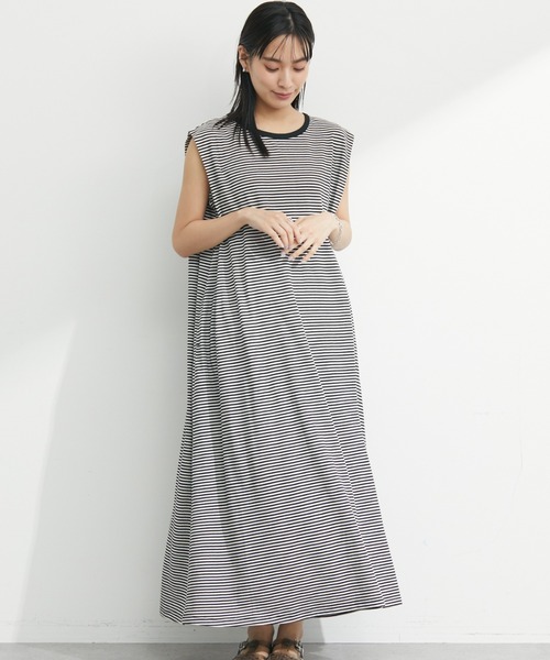 さわやかなボーダーが春夏にぴったりなワンピース。肩に入ったタックですっきりとしたボディラインをメイクします。ノースリーブでヘルシーな肌見せも◎これからの時季、1枚あるとデイリーに活躍してくれるおすすめアイテムです。【素材】透け感[無し]裏地[無し]伸縮性[やや有り]光沢感[無し]生地の厚さ[薄手]付属品[無し]ポケット[有り]前2つ● Green Parks ●(グリーン パークス)20以上の人気ブランドを取り扱うアパレルセレクトショップ。ベーシックながらもさりげなくトレンドを取り入れたオリジナルブランドchocol raffine robeも展開。▼ 商品のお気に入り登録がおすすめです ▼商品ページ内のハートマークをクリック。完売時の再入荷や、最後の1点の通知、コーディネート画像がアップされたとき、お得なお値下げの際の通知を受ける事ができます。【お知らせ】ページでも通知が確認できます。