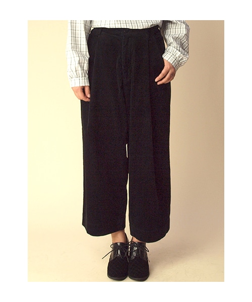 6Wの太畝がカジュアルで可愛いパンツ。ワイドデザインですが、ウエストにタックが入っているのですっきりと着て頂けます。※後ろウエストゴム入ります。