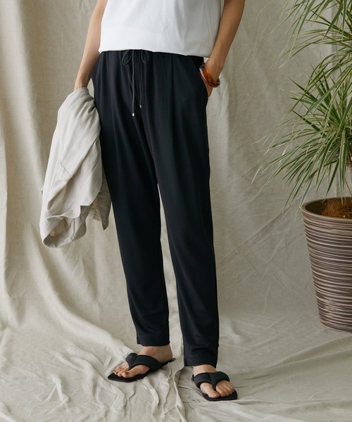 リラックスムードを演出するカットパンツ。 無駄のないスリムなテーパードシルエットが特長です。ウエストゴムのイージーな仕様で穿き心地のよさも抜群。 どんなアイテムとも合わせやすく、ワードローブに備えておくと活躍すること間違いなしです。 透け感[無し] 裏地[無し] 伸縮性[やや有り] 光沢感[無し] 生地の厚さ[薄手] 付属品[無し] ポケット[有り]前2つ ●AMERICAN HOLIC ● (アメリカンホリック) 大人の女性の毎日を軽やかで豊かにするブランド。 カジュアルなのにオシャレ、コーディネートも楽。ONにもOFFにも等身大で楽しむオトナの日常着をテーマに、スタイリッシュかつ自然体を楽しめるカジュアルスタイルを提案します。 ▼ 商品のお気に入り登録がおすすめです ▼ 商品ページ内のハートマークをクリック。完売時の再入荷や、最後の1点の通知、コーディネート画像がアップされたとき、お得なお値下げの際の通知を受ける事ができます。 【お知らせ】ページでも通知が確認できます。