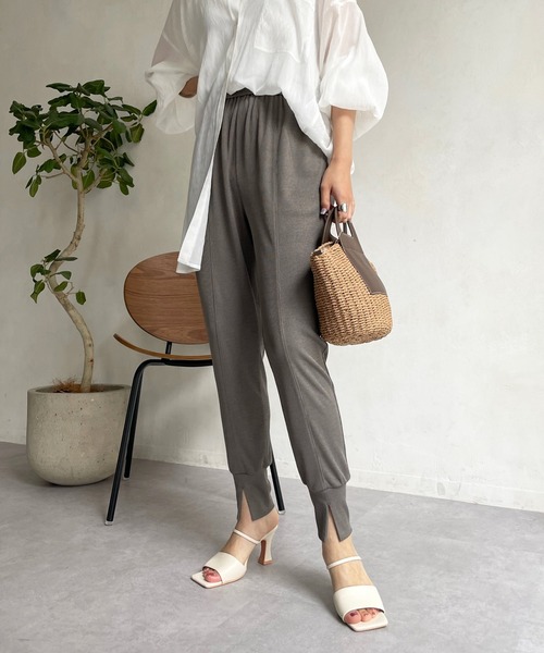 ■2022 SPRING & SUMMER ITEM■ リラクシーなのにおしゃれに見せられる。 リブ編みで仕上げたジョガーパンツ ジャージーのようにリラクシーで、ノンストレスな着心地を叶える1着。 落ち感がありてろっとしたリブ素材は、楽なのにおしゃれな印象を与えてくれるトレンドのシルエット。 フロント裾にはさり気なくスリットを入れることで、抜け感をプラスしてくれます。 リブの縦ラインが脚をすっきりと見せてくれるので、ボリューム感のあるブラウスなどともバランス◎ 今らしくきれいめ×カジュアルに、MIXした大人なスタイリングがおすすめですよ。 - POINT - ・トレンドのジョガーパンツ ・ジャージーのような楽さ! ・リブの縦ラインがすっきり見せ◎ -------------------------------- 洗濯:手洗い可能 透け感: なし 裏地: なし 伸縮性: あり 光沢感: なし -------------------------------- 【 ♡ をクリックでお得な情報をお知らせいたします 】 〈 商品のお気に入り登録 〉 お気に入りアイテムのお値下げ・再入荷・在庫ラスト1点など通知を受けることができます。 〈 ブランドのお気に入り登録 〉 DOUDOUの新商品や再入荷、セール、クーポン配布などお得な情報を受けることができます。 -------------------------------------- ※ 生産の都合上、お届け時期が前後する場合がございます。 ※ 掲載画像の商品の色味は、 撮影場所や光の当たり具合などにより色味が異なって見える場合がございます。 また、お客様のお使いのPC・スマートフォン等のモニター環境などにより色味が異なって見える場合がございます。予めご了承の上ご注文ください。 ※ 着用、お取り扱いの際は、商品についている品質表示とアテンションタグを必ずご確認下さい。