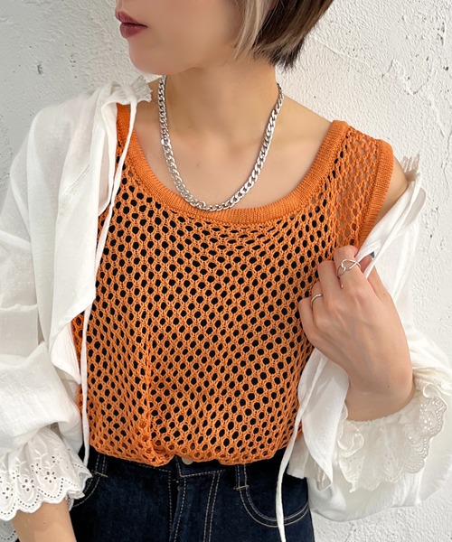 【カジュアルなスタイリングにぴったりなメッシュタンク◎】 透け感が今年らしいメッシュニットタンクで カラバリ豊富なのもポイント◎ これからの時期キャミやタンクの上からレイヤードするだけで 涼し気でこなれた印象で着用していただけます。 程よいゆるさがあり、カジュアルなスタイリングにぴったりなアイテム◎ ※透け感のあるアイテムです。インナーは付属しておりません。 --------------------------------------- 生地の厚さ:薄め 透け感:あり 伸縮性:なし --------------------------------------- ※ご覧のモニター環境や撮影環境により実際の商品と多少色味が異なって見える場合がございます。 ご理解の程よろしくお願いいたします。 【お買い物をよりお楽しみいただく為に♪】 ▼商品のお気に入り登録をおすすめします ♡をクリック! 完売カラーの再入荷や、ラスト1点の通知、 セールの際の通知を受ける事ができます。 ブランドのお気に入り登録も ご一緒にお願い致します。