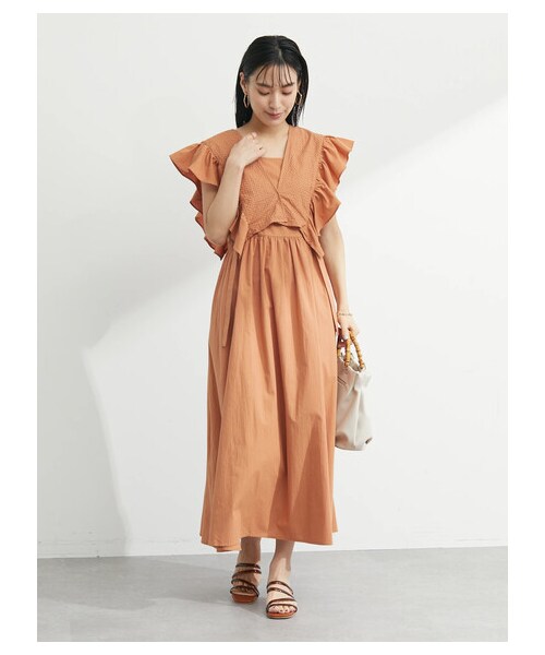 フリルたっぷりのベスト×キャミワンピースの2点セット。 ベストはシャープなVネックがポイントになり、ステッチもアクセントをプラスする好ディテール。サイドのベルトで調整が可能です。 キャミワンピースは胸下の切替で脚長効果も期待できます。ふんわりとしたスカートシルエットで、スタイリングを愛らしく演出してくれます。 セットでもセパレートした単品使いでも、幅広い着こなしが楽しめそうなアイテムです。 透け感[無し] 裏地[無し] 伸縮性[無し] 光沢感[無し] 生地の厚さ[普通] 付属品[有り]2セット ポケット[有り]前2つ