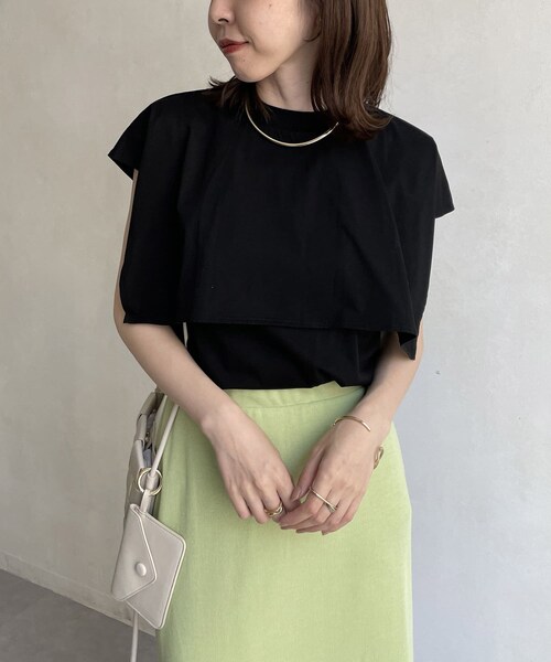 5/20(fri) ~ 5/26(thu) の7日間限定で【SELECT HAPPY BAG】を 開催中!ケープ襟が目を惹くデザイン性◎Tシャツ商品ポイント・トレンドのケープ襟が付いたTシャツ・大きめのケープで腕が程よく隠れる・ノースリーブが苦手な方にもおすすめ・シルケット素材で目が詰まっていて、ブラウスのようにきれい見えする生地感・後ろのネック部分がスリットになっていて抜け感もプラススタイリングポイント・カラーパンツを合わせてカジュアルなスタイリングに・すっきりとした印象のタイトスカートを合わせた女性らしいスタイリングも◎**********************透け感:なし裏地:なし伸縮性:あり光沢感:なし**********************▼洗濯方法液温30度を上限として、非常に弱い水流で洗える※撮影場所やお使いのモニター環境により若干お色味が異なる場合がございます。特にロケの撮影では明るく見える傾向にございます。※商品はサンプルで撮影をしております。若干の仕様が変更になる場合がございますので予めご了承の上ご注文くださいますようお願いいたします。▼商品のお気に入り登録完売カラーの再入荷通知や、ラスト1点の通知、セールの通知も受け取ることができます。▼ブランドのお気に入り登録新商品や再入荷など、いち早くブランドのお得な情報を受け取ることができます。