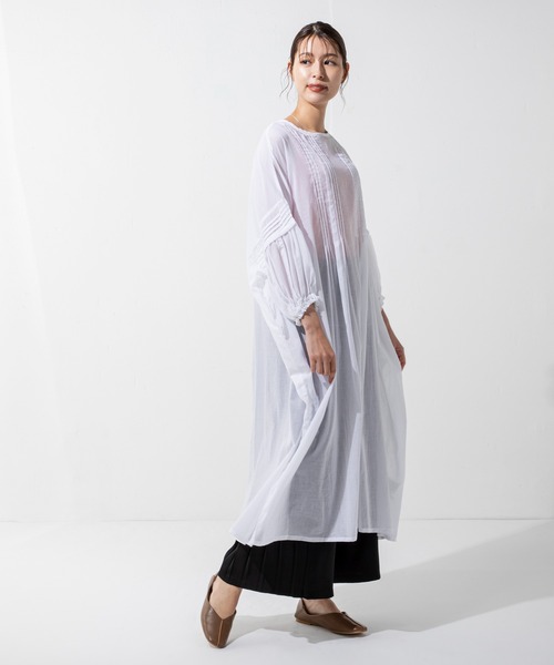 【デザイン】 コーディネートの幅を広げる3WAYワンピース。薄地で軽い綿ボイル生地を使用し、柔らかな肌触りと清涼感のある雰囲気を導きます。ゆったりとしたシルエットと、肩を落としたドロップショルダーデザインが今年らしい抜け感を叶え、袖のピンタックがシンプルな中に上品なディテールを構築。ポケット付きで機能性にも優れ、前後で着られる仕様に加え羽織としての着用も可能で、マルチに活躍するアイテムです。 【MODELサイズ】 ■オフホワイト | MODEL(メイン画像):身長 168cm / B 78cm / W58cm / H84cm ■ブラック | MODEL(メイン画像):身長 168cm / B 78cm / W58cm / H84cm ■ミント | MODEL(メイン画像):身長 168cm / B 78cm / W58cm / H84cm 【MODEL着用サイズ】 Fサイズ