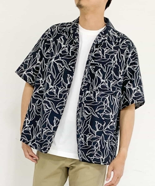 ◆アーティスティックな線画プリントを施した花柄アロハシャツ風開襟シャツ。◆ 【デザイン】 線画で表現されたアートタッチな花柄プリントが特徴のフラワープリントシャツ。 カジュアル過ぎない大人な雰囲気のプリントに仕上げました。 街でも馴染みやすいように少ない色数で表現した色使いもポイントです。 シルエットは身幅に余裕のあるワイドシルエットでトレンドのリラックス感が出て夏服におすすめです。 【素材】 ポリエステルストレッチ素材のため、シワになりにくく、サラッとした肌触りがポイント。 接触冷感機能付きで真夏に1枚で着てもひんや涼しく着用できます。 機能も付いており洗濯後のお手入れも簡単です。 【スタイリング】 シャツハオリとしてシンプルに無地カットソーやロゴTとあわせたり、 ロングシルエットカットソーとの裾レイヤードスタイルでトレンドの着こなしができる汎用性の高いアイテムです。 ボトムはきれい目スタイルであればスラックス合わせ、 カジュアルスタイルであればゆとりのあるパンツとあわせるとバランスが良いコーディネートができます。 モデル身長:179cm/着用サイズ:L 身長:172cm/着用サイズ:L ---------------- ≪お気に入り登録機能の使い方≫ ■商品のお気に入り登録(ハートマークをクリック) 再入荷通知や値下げ等、お得なご案内を受けることができます。 ---------------- ※お使いの液晶環境により、色味が多少異なる場合がございます。予めご了承ください。 ※サンプルにて撮影しておりますため、お届けの商品と仕様が若干異なる場合がございます。予めご了承ください。