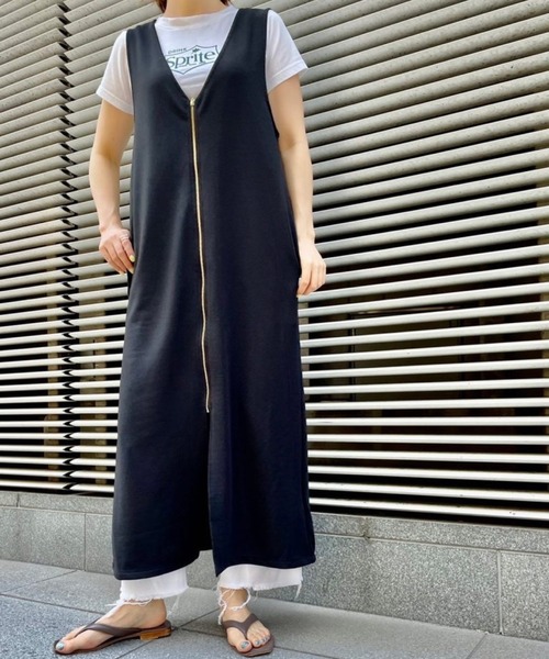 前後逆に着られる、2WAY仕様のジャンパースカート。 ジップを開けて羽織るとジレ風に。 多彩なスタイルが楽しめる万能アイテム。コーデの幅もぐんと広がります。 深めのVネックはインナー選びもし易く、女性らしさを後押ししてくれる。 程よくリラックス感が、抜け感のある大人の着こなしを叶えてくれます。