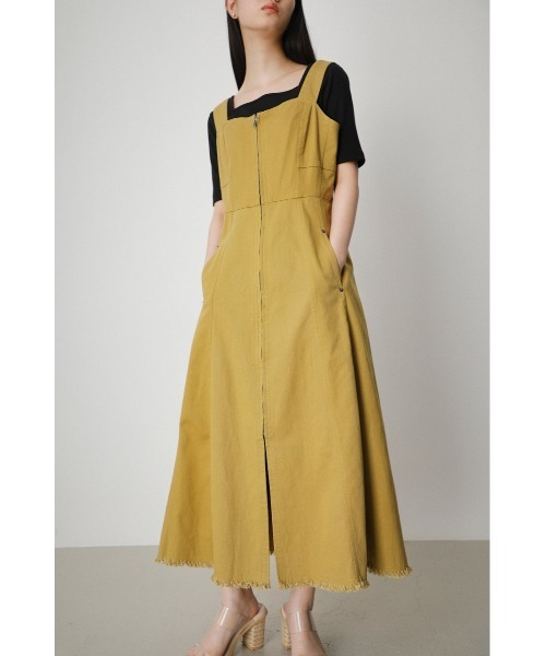 ・程よい肉感のストレッチデニムとツイルストレッチ生地を使用。 ・ストレッチ素材で着心地抜群です。 ・フロントジップ下にスリットを入れ、広がりすぎないスカートラインで大人っぽい印象にしています。 ・上身頃バックにシャーリングゴム、ストラップには3段階の調整できるボタンデティールにし、幅広い体系に合うデザインです。 <コーディネート> ・ノースリーブでも半袖でもインナーが合わせやすくデイリーにお使い頂けます。 ▼商品のお気に入り登録 お気に入りアイテムの値下げ・再入荷・在庫1点などの通知を受け取ることができます。 ▼ブランドのお気に入り 登録新商品や再入荷、セール、クーポン配布などお得な情報を受け取ることができます。