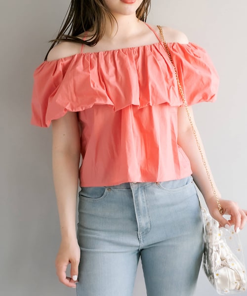 トレンドのバルーン衿が華やかな肌見せトップス■デザイン・ふんわりボリューム感のあるバルーン衿が目を惹くオフショルブラウス。・顔周りを華やかにしてくれ、肌見せがヘルシーな女性らしさを演出します。・ホルターリボン付きで後ろ姿も可愛いくワンポイントに。・襟ぐりはゴム入りなのでオフショルにしたり、ワンショルで着たりと様々な着方を楽しめるのも嬉しいポイントです。■カラー・オフホワイト/ベージュ/オレンジの3色展開■スタイリング・インナーは肩紐が見えないブラトップなどを着ていただくとヘルシーでおすすめです。・トレンドのダメージデニムなどカジュアルなパンツと相性抜群です。・足元はミュールサンダルで女性らしさをプラスして◎・マーメイドシルエットやIラインのスカートにインすると大人レディなコーデに。-----------------------------裏地:なし光沢感:なし透け感:ややあり(オフホワイト)伸縮性:あり(襟ぐり)-----------------------------model:166cm/152cm お取り扱い上の注意※キャンペーンやフェアにより価格が変動する場合がございます。※サンプルで撮影している為、実際の商品と若干仕様が異なる場合がございます。※着用、お取り扱いの際は、商品についている品質表示とアテンションタグを必ずご確認下さい。※ご覧のモニター環境や撮影環境により実際の商品と多少色味が異なって見える場合がございます。ご理解の程よろしくお願いいたします。≪返品・交換について≫・着用後、洗濯後の返品・交換は致しかねます。・商品到着後、着用前に商品状態のご確認をお願い致します。登録のおすすめ【気になるアイテムをお気に入り登録】・お気に入り登録した商品はメニューの「♡お気に入り」ボタンから、一覧表示することが出来ます。・完売商品の再入荷やラスト1点の通知、セールの通知を受け取ることが出来ます。パソコン(iPad)の場合・・・「カートに入れる」ボタン横に表示されている「♡」をクリックしてください。スマートフォンの場合・・・商品画像右上に表示されている「♡」をタップしてください。【PALCLOSETアプリのブランドフォロー】・新商品やお得な情報をいち早くcheckする事が出来ます。・スタッフのコーディネートをお楽しみ頂けます。