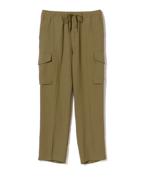 快適な穿き心地のカーゴパンツ きれいな落ち感が魅力のカーゴパンツ。強撚糸を平織りし、仕上げに生地を縮ませてシボ感を出したジョーゼットを使用。薄くて軽い生地のため、見た目にもふんわりとした上品さがあります。ドライタッチで伸縮性にも優れているので、ストレスなく着用していただけます。カジュアルなトップスからドレッシーなシャツまで幅広いコーディネートに合わせられる汎用性の高い1本です。