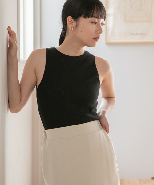 ■素材特性■ 綿ポリエステルのテレコ素材を使用しています。 適度な肉感でインナーとしても使いやすい素材になります。 ■デザイン■ 少し首元が詰まったアメスリデザインのタンクトップになります。 ■スタイリング例■ 様々なアイテムのインナーとして活躍するアイテム。 シャツなど布帛のアイテムのインナーとして着るのがオススメ。 首元が詰まっているだけでいつものスタイリングにも鮮度が出ます。