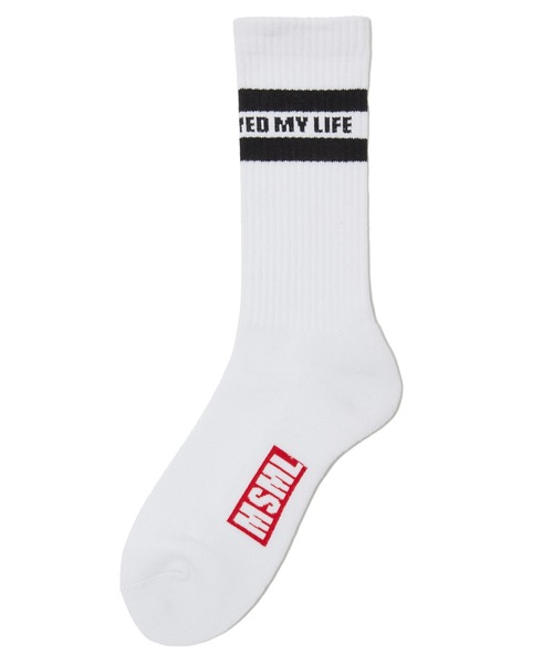 【ストリートスタイルに粋を注ぐチラ見せ演出のラインソックス 】 ソックスを見せる着こなしを提案してきたブランドが誇る、ストリートライクなエッセンス際立つラインソックス。 二本ラインの間に""MUSICSAVEDMYLIFE""、裏返せば片方には""THANK YOU""もう片方には""FUCK YOU""と編み込みロックテイスト溢れるギミックの効いたアイテム。 ボディー部分をリブ編み、足の甲の部分を裏毛パイル無しの天竺編みにし、通気性を考慮した設計となってます。 ■ブランドの大人気ソックス復活 ■あらゆるスタイルに合わせやすいラインソックス ■ロックテイスト溢れるアイテム