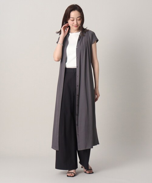 【デザイン】 ボディにフィットし過ぎない程よい分量感のワンピース。 付属の共布ベルトでウエストマークして1枚着として、 前開きなので羽織としてもおすすめの2way仕様になっています。 ※ポケットなし 【生地感】 割繊糸独特の表情と肌触りの良さが特徴のツイル素材。 ソフトな風合いとドレープ感があり、シャンブレーなので色の変化が楽しめます。 ※裏地なし(キャミソールドレス付き) ※ワンピース・キャミドレス共に手洗い可。複数枚のセット商品のため、洗濯表示・注意事項等は、本製品で御確認下さい。 ********************** 【スタッフ着用コメント】 生地感:ややとろみのある、しなやかな手触りの生地。 つるんとしていて柔らかい肌当たりです。 ほんのり光沢感があり、光の当たり方によってつやっぽく見えたりマットに見えたりと、様々な風合いを楽しんで頂けます。 着用感:リラックスした着心地ながら、きれいめに見えるラクちんワンピです! すとんと落ちるすっきりめシルエットでラインもきれい。 程よく分量感があり、流れるような揺れ感で女性らしさをプラスしてくれます。 座りジワが気になりにくいのも嬉しいポイントでした! エレガントに着たい時には共布ベルトを着けて、シャープな着こなしやカジュアルに楽しみたい時には前を開けてジレのように着るのがおすすめです! ********************** ※2021秋冬商品の一部より「レギュラーサイズ/トール&ラージサイズ」の商品番号と価格が統一となりました。 モデル情報:身長163cm B80 W59 H82 着用サイズ:02(M) 店舗へのお問い合わせ商品番号:153-54590 ●製品寸法: 00(SS):ワンピース着丈112cm ワンピースB117cm ワンピース肩幅53cm キャミソールドレス着丈82cm キャミソールドレスB85cm 02(M):ワンピース着丈117cm ワンピースB124cm ワンピース肩幅55cm キャミソールドレス着丈87cm キャミソールドレスB92cm 04(LL/トール):ワンピース着丈120cm ワンピースB130cm ワンピース肩幅56cm キャミソールドレス着丈90cm キャミソールドレスB98cm 44(4L):ワンピース着丈121cm ワンピースB138cm ワンピース肩幅58cm キャミソールドレス着丈92cm キャミソールドレスB106cm 48(6L):ワンピース着丈124cm ワンピースB146cm ワンピース肩幅59cm キャミソールドレス着丈95cm キャミソールドレスB114cm 備考: