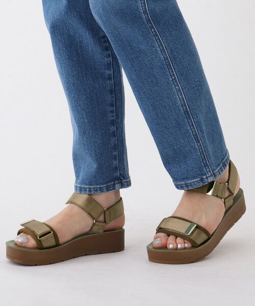 光沢のあるテープベルトを使用して上品に仕上げたスポーツサンダル。 【デザイン】 デイリーユースしやすいデザインの厚底スポーツサンダル。 アッパーに配した光沢テープベルトが上品な印象です。 ベルトの先にはメタルパーツを配してぐっとオトナな雰囲気に仕上げています。 タウンユースからアウトドアシーンまで幅広いシーンに合わせやすく、この夏のマストアイテム間違いなし。 【素材】 クッション性のある厚底ソールは凹凸があり滑りにくく、屈曲性もあるため足の負担を軽減し、疲れにくい仕様。 ストラップベルトは面ファスナー仕様で、サイズ調整が可能で着脱のしやすいアイテムです。 アッパーの裏はジャージ素材で足あたりもよく履き心地も◎。 素足はもちろん、ソックス合わせでカジュアルに合わせていただくのもおススメです。 店舗へのお問い合わせ商品番号:C71-24020 ●製品寸法: 02(23.5~24.0cm):ヒール高3.5cm 03(24.0~24.5cm):ヒール高3.5cm 備考:重量:02(23.5~24.0cm)片足約220g(サンプル重量)