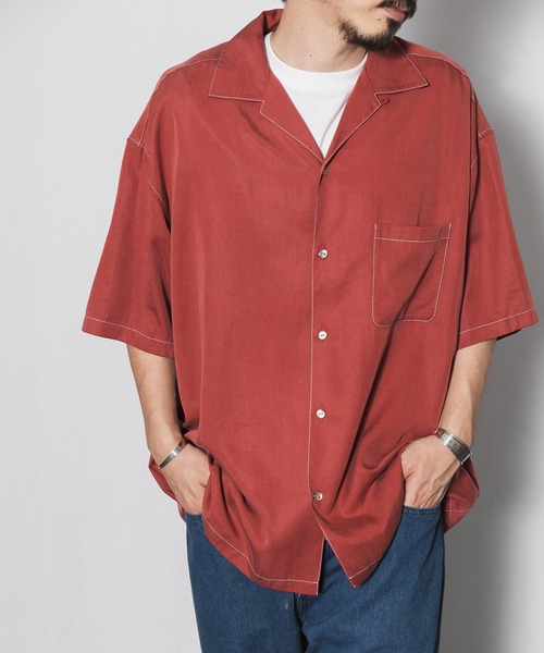 【ヴィンテージでリラクシー。夏コーデに重宝するオープンカラーシャツ】古着のような毛羽立ちとヴィンテージ風のフェード感と色落ち感のある独特な風合いのある生地を使用した半袖のオープンカラーシャツ。ドレープ性が高く、ソフトで滑らかな質感。背裏にキュプラ素材、ボタンは猫目の貝ボタンを使用し、より高級感を演出しています。表に見えるステッチカラーを白にし、レトロでヴィンテージな雰囲気に仕上げました。リラックス感のあるボックスシルエットでリゾートテイストを感じさせる1枚です。ーーーーーーーーーーーーーー透け感:なし伸縮性:なし裏地:なし光沢:ややあり生地の厚さ:普通ーーーーーーーーーーーーーー【確認事項】*照明の関係により、実際よりも色味が違って見える場合があります。またお客様のパソコン・スマートフォンなどの環境により、若干製品と画像のカラーが異なる場合もございます。予めご了承ください。*取り扱いについては、商品についている品質表示でご確認ください。▼この商品のお気に入り登録▼カートボタン付近の♡をクリックして商品をお気に入り登録をすると、完売カラーの再入荷通知や、ラスト1点の通知、セールの通知などを受け取ることができます。▼AMERICAN RAG CIEのお気に入り登録▼「♡お気に入りショップに追加」をクリックすると、新商品や再入荷等、AMERICAN RAG CIEの最新情報を受け取ることができます。