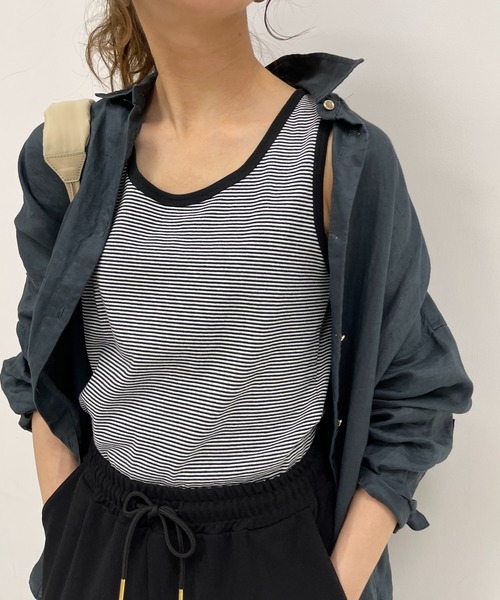 【2022S/S】 Spick & Span 程よいフィット感が心地よい肌触りのタンクトップ。 1枚で着ても、レイヤードで重ねてもすっきり着れるよう 計算された形にこだわったSpick & Spanだけの別注のアイテムです! 空きすぎないネックラインも使いやすいポイント。 ベーシックカラーのブラック、ベージュに加え、スタイリングのアクセントになるパープルの3色展開。 1枚着でヘルシーに、透け感のあるシャツに重ねてレイヤードスタイルも楽しみたいアイテムです。 ▼シリーズが他にもございます。 22070210003320【PICCADILLY 】ボーダーTEE 【PICCADILLY/ピカデリー】 パリ発のジーンズブランド。 1977年、ストレッチ素材を使用しスタイリッシュジーンズとして、フランスを中心にヨーロッパで人気に火が付きました。エラスティックパンツの先駆けとして大変な人気を博しているブランドです。 ※メーカー表示について 弊社販売カラー:メーカー品番/カラー ブラック(001): PY-SPS-CT003 / BLACK ベージュ(027): PY-SPS-CT003 / BEIGE パープル(050): PY-SPS-CT003 / PURPLE ※取り扱いについては、商品についている品質表示でご確認ください。 ※こちらの商品は、Spick & Spanでの取り扱いになります。 直接店舗へお問い合わせの際は Spick & Span店舗へお願い致します。 ※店頭及び屋外での撮影画像は、光の当たり具合で色味が違って見える場合があります。 商品の色味はスタジオ撮影の画像をご参照ください。 ブラック着用スタッフ:160cm 着用サイズ:フリー ベージュ着用スタッフ:160cm 着用サイズ:フリー パープル着用スタッフ:160cm 着用サイズ:フリー