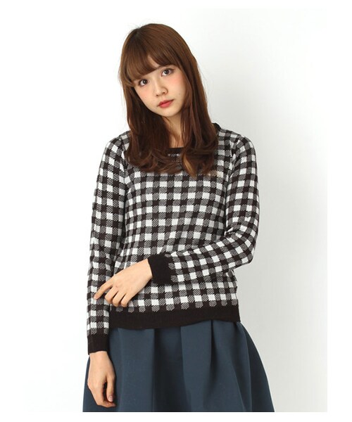 ウール混のふんわり柔らかく暖かい糸を使用した、チェックニットプルオーバーです。大きなギンガムチェックが印象的に、上級コーデを楽しめます。スカートにもパンツにも合わせやすいので、着回しも抜群です。【モデル身長:約163cm/着用サイズ:Sサイズ】
