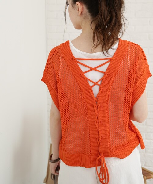 メッシュニットがこの夏トレンド!‘’ コーデに迷わない優秀セットアイテム ‘’■デザインバックスタイルまで可愛いニット。ざっくりとした編地のニットに、滑らかな肌触りのインナータンクがセットに!身幅は広めにデザインされているのでゆるっと着こなせます。編み目が荒く透け感があり、通気性が良いので暑い日にも着やすい1枚。■スタイリングコンパクト丈なのでパンツにもスカートにも相性◎トレンドのショートパンツにも合います!また、ニットとインナーは別々にも着れるので長めのTシャツに合わせてレイヤードコーデもおすすめ♪■着用コメント・スタッフA 身長:160センチ、体型:やせ型 着用サイズ:S普段Sサイズ着用で、今回もSサイズにしました!ゆるっと着れるのでストレートパンツに合わせてもバランスがいいです。・スタッフB 身長:152センチ、体型:普通 着用サイズ:Mトレンドのメッシュニットは柔らかくて着やすいです♪風通しがいいのでこれからの時期にぴったり〇・スタッフC 身長:148センチ、体型:ふくよか 着用サイズ:M二の腕をカバーしてくれるので安心して着れました!低身長の私ですが、丈感もお腹が隠れるくらいで丁度いいです-------------■生地詳細ニットはアクリル素材なのでシワになりにくく、ご自宅で手洗いも可能です。インナーのタンクトップはさらっとした素材感で、全て使い勝手の良いホワイトカラー。※こちらの商品は網目が粗いデザインのため、お手持ちのインナーもしくはセットアイテムのインナーを合わせて頂くのがお勧めです。プルオーバー アクリル100% タンクトップ:ポリエステル65 コットン35%透け感:ややあり伸縮性:あり生地の厚み:普通裏地:なし-------------#CutieBlonde#Cutie#cutieblonde#cutie#キューティブロンド#キューティ#20代#30代モデル情報:身長160cm B78 W59 H85 着用サイズ:02(M)店舗へのお問い合わせ商品番号:256-14019●製品寸法:01(S):プルオーバー着丈46cm プルオーバーB106cm プルオーバー肩幅56cm タンクトップ総丈56cm タンクトップB90cm タンクトップ肩幅29cm02(M):プルオーバー着丈49cm プルオーバーB108cm プルオーバー肩幅59cm タンクトップ総丈57cm タンクトップB93cm タンクトップ肩幅29cm03(L):プルオーバー着丈51cm プルオーバーB110cm プルオーバー肩幅61cm タンクトップ総丈58cm タンクトップB96cm タンクトップ肩幅29cm備考: