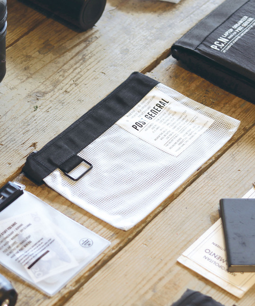 半透明のPVC素材を使ったポーチ。バッグインバッグやトラベルポーチなどにもお使いいただけます。【素材】格子柄のPVC素材。透けすぎることなく、日常使いしやすいです。【デザイン】ウェビングテープ使いと、「POST GENERAL」のロゴによりミリタリーなテイストを感じるデザイン。B5サイズまで収納可能。文具類や、充電ケーブルなどのガジェット類の整理にも◎【ポイント】メンズ・レディースどちらも使えるユニセックスアイテム。★《お気に入り登録》でお得な情報がいっぱい★・「商品のお気に入り登録」で再入荷通知や、ラスト1点の通知、セール通知も受け取ることができます。・「ブランドのお気に入り登録」で新商品や再入荷など、お得な情報を受け取ることができます!※ご覧のモニター環境により、画像の色味と多少異なる場合がございます。※他のキャンペーンにより、期間中に価格が変動する場合があります。※セールは予告なく終了させていただく場合もあります。