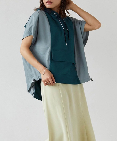 マットでハリのあるさらっとした素材のBODYにスポーティなナイロン素材をドッキングしたビッグシルエットのフードプル。袖はフレンチスリーブで抜け感のあるデザインに仕上げました。やや太めで柄入りのスピンドルやカンガルーポケットもアクセントになっています。幼くなりがちなパーカーですが、大人映えする素材なので一枚あると大活躍間違いなしのアイテム。配色の異素材切り替えなのでレイヤードや難しいコーデを考えることなく、一枚で着て様になるのがラクチンでうれしいポイント。☆★お買い物をお楽しみいただく為に★☆★商品のお気に入り登録完売カラーの再入荷通知や、ラスト1点の通知、セールの通知も受け取ることができます。★ブランドのお気に入り登録新商品や再入荷等、ブランドのお得な情報をいち早く受け取ることができます。バイカラー/パーカー/フーディー/スポーツ/カジュアル