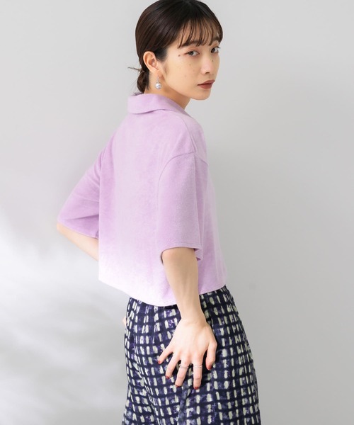 【ひと味違うスタイリングを仕上げるポロシャツ】柔らかい着心地とすっきりした着丈が夏に丁度いいパイルポロシャツ。見た目どおりの柔らかい着心地を持ち、パイル地ならではの豊かな表情がスタイリングを華やかに仕上げます。絶妙なカラーリングも見逃せないポイントとなっております。POINT・すっきりした印象を与えるクロップド丈・着心地の良さを叶える柔らかい素材・スタイリングを華やかにするカラーリングCOORDINATEハイウエストボトムと相性抜群なので様々な着こなしをぜひ。あえてボトムも色物で合わせて新鮮なスタイリングを楽しむのもおすすめです。※商品画像は、光の当たり具合やパソコンなどの閲覧環境により、実際の色味と異なって見える場合がございます。予めご了承ください。※商品の色味の目安は、商品単体の画像をご参照ください。▼お気に入り登録のおすすめ▼お気に入り登録商品は、マイページにて現在の価格情報や在庫状況の確認が可能です。お買い物リストの管理に是非ご利用下さい。-----------------------------透け感:なし伸縮性:ややあり裏地:なし光沢:なしポケット:なし-----------------------------