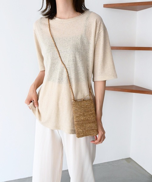デザイン 楽ちんで着心地抜群のオーバーサイズ半袖Tシャツ。 トレンドの透け感とゆるっと着られるオーバーサイズが魅力。 素材 透け感のある生地が夏らしく、涼しげな印象を与えてくれます。 コーディネート デニムはもちろん、綺麗めのパンツと合わせた抜け感のあるスタイリングがおすすめ。 サイドスリット入りなのでボトムスインでもアウトでもサマになる優秀な1枚です。 ※この商品は天然に近い状態の繊維を使っているため、はじめはリネンのわた屑が出ます。 お洗濯を重ねることで落ち着きますが、一緒に洗濯した物にも付着しますので、単独洗いまたは目の詰まったネットに入れて洗濯してください。 ※濃色は、必ず白・淡色とは分けて洗濯してください。 El mar(エルマール) El mar はスペイン語で『海』 海に向かうときはだれでもワクワクする。 洋服を選ぶとき、袖を通すとき、 同じように心が踊るアイテムを提案したい。 そんな『ワクワク』な気持ちを込めて El mar はデビューしました。 ------------------------------------- 生地の厚さ:厚い〇〇〇●〇薄い 伸縮性:あり 透け感:あり 裏地:なし 光沢:なし 水洗い:可 ・サイドスリットあり ------------------------------------- 取扱い:洗濯機 濃色は色落ちする可能性がありますので、他の物とのお洗濯はお避けください。 生成り・淡色には蛍光増白剤の入っていない洗剤をご使用ください。 長時間の水への浸漬はお避けください。 洗濯後は速やかに形を整えて陰干しをしてください。 水洗いの後の乾燥機のご使用はお避けください。 この商品は素材の特性上、ピリング(毛玉)の発生しやすい商品です。ご了承ください。 クリーニングネットを使用してください。 アイロン掛けの際は、あて布をご使用ください。 リネン・レーヨンの含まれる商品は、水に濡れると縮みやすい特性があるため、 ドライクリーニングを推奨しておりますが、ご家庭でお洗濯する場合は、必ず洗濯表記をご確認ください。 ※取り扱い及びお手入れ方法については、商品について取扱表示、洗濯表示にてご確認下さい。 ※照明の関係により、実際よりも色味が違って見える場合があります。またパソコン・スマートフォンなどの環境により、若干製品と画像のカラーが異なる場合もございます。 ※商品の色味は、商品アップ画像をご参照ください。