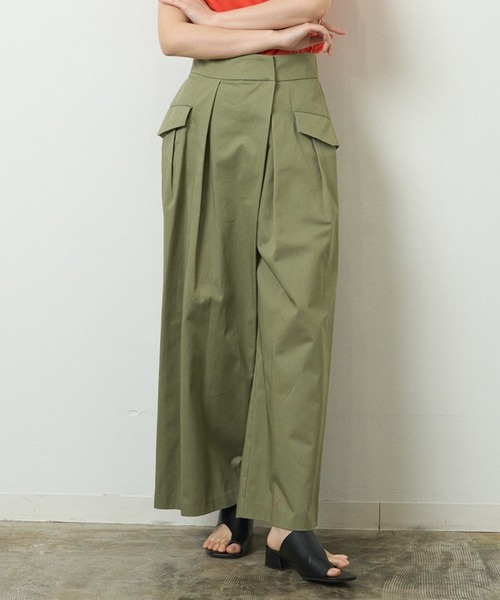 ♦2022 SUMMER COLLECTION♦スカート見えするラップ風デザインが印象的なワイドパンツ●フロントには大胆なラップ風のデザイン。●サイドに施したフラップポケットが横から見ても印象的。●おなか周りをカバーしてくれる立体感あるデザイン。●体のラインを拾いにくいワイドなシルエット。●左脇コンシールファスナー開きで着脱も楽ちん。◆COLOR◆ベージュ : コーディネートしやすい柔らかな印象のベージュ。ライトカーキ : いろんなジャンルのルックを楽しめる女性らしいライトカーキ。◆MATERIAL◆高密度の程よい肉感のあるチノクロスを使用。ツイルのような織り目があり、見る方向によってはやや光沢感がでる表情のある素材。洗うたび柔らかくなり表情の変化も楽しめる素材。■お手入れ方法:手洗い※お取扱いについては、商品についております品質表示にてご確認ください。■透け感: あり 〇〇〇〇●なし■生地の厚さ:厚い 〇〇●〇〇 薄い■裏地: なし■伸縮性: なし■光沢感: ややあり※光の具合で色味が違って見える場合があります。★もっとお買い物を楽しむために★★商品のお気に入り登録お気に入り登録した商品は、セールの通知、ラスト1点の通知、完売カラーの再入荷通知などを受け取ることができます。★ブランドのお気に入り登録新商品の発売や再入荷、タイムセールの通知など、HERENCIA取扱いブランドのお得な情報を受け取ることができます。