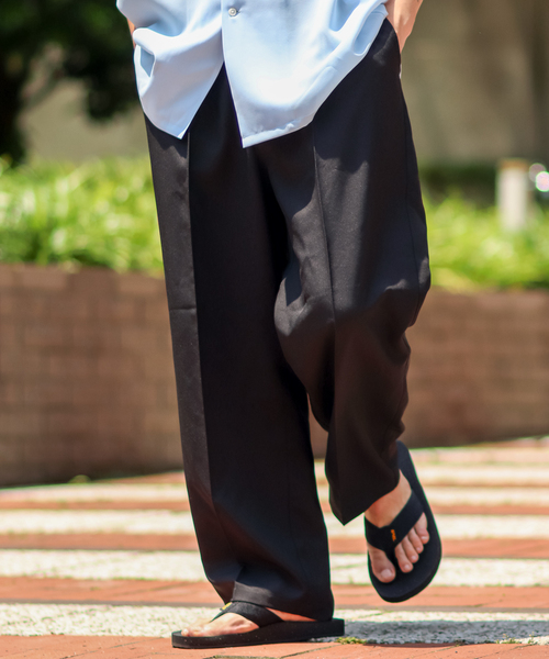 裾に動きのでるゆるっとしたワイドスラックス。 程よい加減のワイドシルエットで、レングスをやや短くする事でバランスを取りやすくしています。 清涼感がある色展開はこれからのシーズンに重宝しそうな一本。 柔らかくナチュラルなストレッチ性があり、落ち感のある素材。 薄手ですが丈夫で、かつ軽量なので扱い易い素材で仕上げました。 【Refalax / リフラックス】 カジュアルさを演出するために、麻の様なフシ感を表現した進化形ポリエステル。 柔らかくナチュラルなストレッチ性があり、落ち感のある素材が特徴の生地。 薄手ですが、丈夫で軽量なので取り扱いがしやすくウォッシャブルで家庭用洗濯機で洗濯出来るイージーケアが魅力の素材。 シワになりにくく、ピリングが起きにくい仕様となります。 ********************** 裏地:なし 伸縮性:なし 光沢感:なし 生地の厚さ:やや薄手 ********************** 【スタッフ着用コメント】 《スタッフA》 身長:175cm/体型:細め/普段サイズ:M/着用サイズ:L サイズ感:ゆったり 素材感:見た目と違い柔らかく穿きやすい素材感 着心地:肌当たりも良く着心地良い ********************** ※商品の色味はスタジオ撮影(*全身画像より後ろのもの)の画像を参考にして下さい。 ※商品の色味につきまして、お客様のお使いのPCのモニター環境により実際のカラーと画像の色味が違って見える場合が御座います。予めご了承の上、ご注文下さい。 ※店頭・外での撮影画像は光の加減で、実際の商品より明るく見える場合が御座います。 モデルサイズ:身長:177cm 着用サイズ:L 本体:洗濯機洗い(弱)