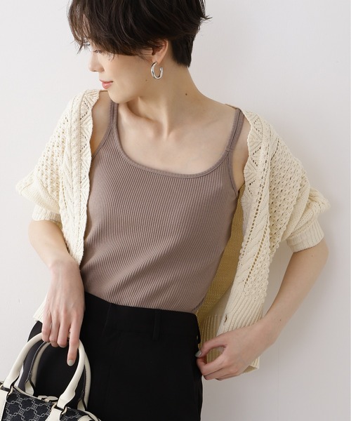 シンプルなデザインのキャミソール。さらっとした心地いい三角テレコ素材を使用しています。デコルテが綺麗に見えるネックラインに細いショルダー紐が女性らしいバランスのデザインです。シャツやカーディガンなどのインナー使いに活躍できます。