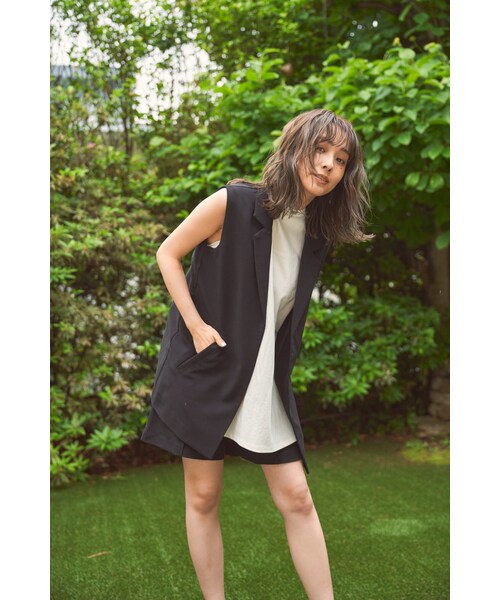 セットアップでも着用可能な大活躍間違いなしのベストです。Tシャツの上にサラッと羽織るだけでおしゃれ見えするアイテムです!付属のリボンでウエスト部分をマークしてもご着用いただけます。