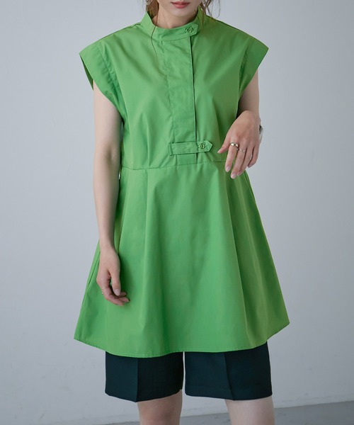 ハリのある生地感でトレンドライクかつ、ラフすぎないモード感もプラス。スタンドネックがさらに「きちんと」見せてくれる。少し長めの着丈とフレアなシルエットが細見え効果も。カジュアルに着られるのにキレイめにも外せる、デザイン性の高いシャツチュニック。【備考】・裏地なし・オフホワイトのみ透け感あり・伸縮性なし【もっとお買い物を楽しんで頂く為に】▼商品のお気に入り登録お気に入りアイテムの値下げ・再入荷・在庫1点などの通知を受け取ることができます。▼ブランドのお気に入り登録新作アイテム入荷や人気商品の再入荷、タイムセールやクーポンなど、いち早く「bflat」のお得な情報を受け取ることができます。