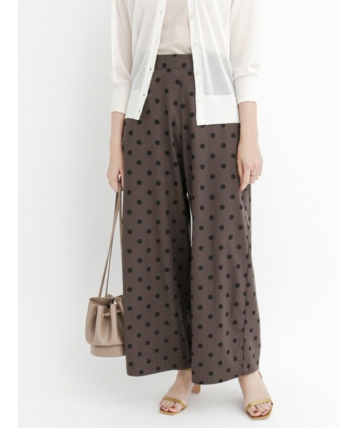 リネン混素材のナチュラルな風合いが清涼感を漂わせるワイドパンツ。映える柄プリントもコーディネートにアクセントをプラスします。締め付けのないワイドシルエットで気になるレッグラインもカバー。ウエストは後ろゴム仕様で穿き心地も楽々です。シンプルなトップスと合わせても着こなしがサマになる1着。