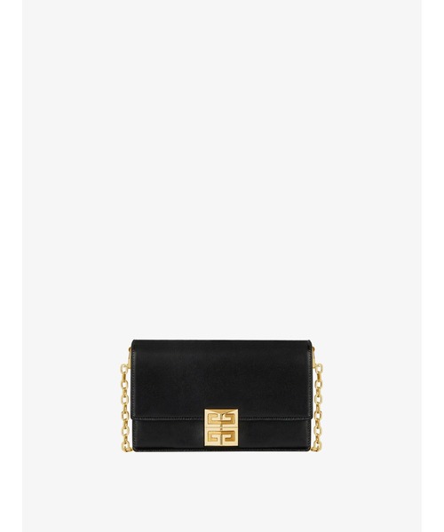 スムースボックスカーフスキン クロスボディバッグ。マグネット式メタル4Gクラスプ付きフラップ。レザーの補強材を施したGリンクチェーンのショルダーストラップ。マチ付きメインコンパートメント1つ、ジップポケット1つ、内側のカードスロット4つ。ゴールドフィニッシュメタルのディテール。レザー風の裏地。カラー : ブラック。