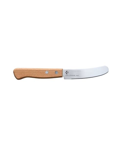 これ1本でパンをカットし、スプレッドをすくってそのままぬれるマルチバターナイフ。ハンドルには同じくケヤキの天然木を使用し、手になじむ使い心地です。細かいギザ刃で、サンドイッチなどもきれいにカットでき、柔軟な刀身でバターやスプレッドが塗りやすいのが特徴です。パッケージもクラフト紙の温かみのあるデザインでギフトにもおすすめです。