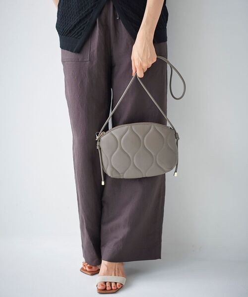 キルティングデザインが印象的なシンプルで映えるデザインショルダーバッグです。使い勝手のいいサイズ感が特徴で、春夏の薄手な着こなしにはポイントとしても楽しめます。印象的な曲線を描くキルティングがポイントでカジュアルな印象になりやすいキルティングをフェイクレザーで上品な印象になっています。ショルダー紐も細く華奢にすることで女性らしく持てるのもポイントになっています。