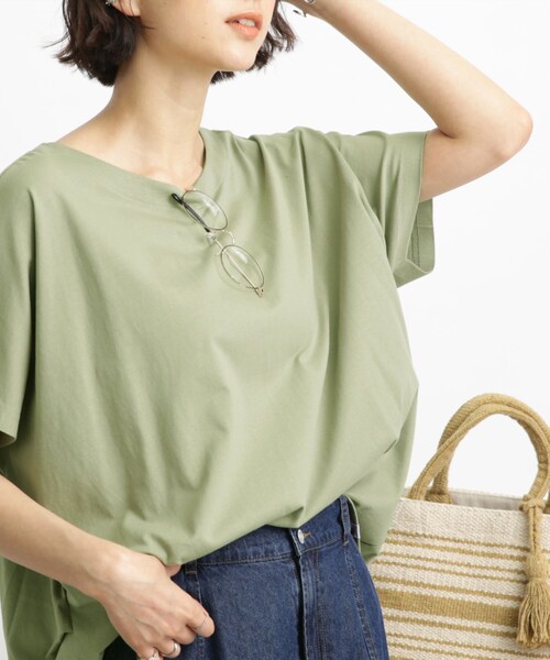 ■デザイン タックフレンチスリーブがポイントのシンプルTシャツ。 腕がきれいに見えるようこだわったタックフレンチスリーブがポイント! 6色展開とカラーバリエーションも豊富です♪ ■スタイリング ゆったりシルエットなので、ワイドパンツなどと合わせればリラックスカジュアルスタイルに! 裾にタック入りで丈に前後差があり、トップスをインしなくてもバランス良く着ていただけます。 ■着用コメント ・低身長STAFF 体型:ふっくら 二の腕をカバーしてくれる程よい袖丈のフレンチスリーブです。 ・高身長STAFF 体型:普通 ゆったりシルエットでワンマイルコーデにぴったりのアイテム! 裾のタックがお腹周りに程よいゆとりを持たせてくれて、気になるお腹周りもカバーしてくれるのが嬉しいポイント! ■生地詳細 触れるとひんやりとする接触冷感機能付きで夏にぴったり! ソフトな質感と特有のしっとりとした風合いが気持ちの良いUSAコットン(綿)100%素材です。 ※こちらの商品はやや透け感があるため、インナーの着用をおすすめします。 透け感:ややあり 伸縮性:あり 生地の厚み:普通 裏地:なし モデル情報:身長168cm B76 W58 H86 着用サイズ:00(FREE) 店舗へのお問い合わせ商品番号:C62-14090 ●製品寸法: 00(FREE):着丈67cm B138cm 裄丈42cm 備考: