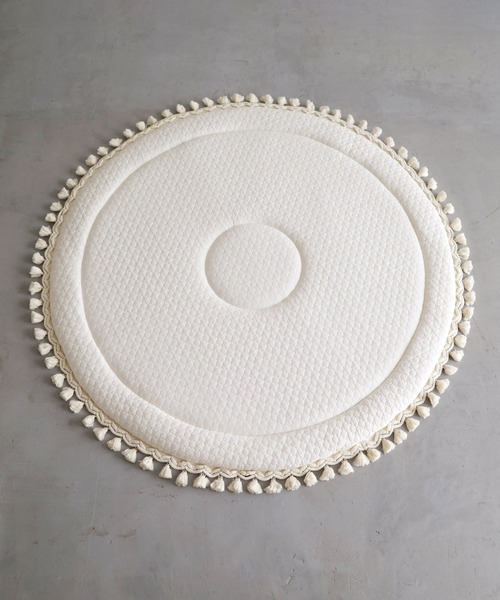 新生児から使える!丸洗いできる!シックなイブルのサニーマット 雰囲気のあるイブル生地にポコポコ感のかわいいモロッカンキルティングで、どこでもふわふわ赤ちゃん専用のスペースに。ベビーフォト・お昼寝アート・バースデイフォトなどインスタやSNSでも話題のタッセル付きマットです。花束のようなパッケージでプレゼントにも大人気です。 赤ちゃんのお昼寝やプレイマットにおすすめ! リビングなどに敷けば、赤ちゃん専用のふわふわスペースがどこでも簡単に出来上がり。ママの近くで安心♪赤ちゃんを近くで見守れる♪見た目もかわいく楽しい気分♪ 中綿入りのキルティング加工でふわふわ快適 表面は赤ちゃんにやさしい綿(コットン)100%のイブルにキルティング加工、中は中綿の2層構造で、リビングの上でもふんわり快適に過ごせます。 とってもかわいい♪モロッカンデザイン! 表面にはイブル生地にこだわりのモロッカンキルティング、そして周りを囲うロープ&タッセルがとってもおしゃれ!優しい配色だから、こんなにかわいいのにどんなお部屋にも馴染みやすいデザインです。 新生児からOK!成長に合わせて長く使えるマットです。 お子さまの成長に合わせて、おむつ替えやごろ寝からお遊びマットとして長く愛用できます。 滑り止め加工付きで、安心 裏面には滑り止め用「ボンディング加工」が施してあるので、フローリングでも滑りにくく快適に遊べます。 お子さまの月齢写真にピッタリ! おしゃれなモロッコ風サニーマットに毎月寝かせて写真を撮れば、簡単でかわいい成長記録が出来上がり! インスタグラムでも話題沸騰ベビーフォト #ハーフバースデー #寝相アート #月齢フォト #サニーマット #マンスリーフォト プレゼントに最適!リボンが付いた花束のようなパッケージでお届けします。 花束のようなパッケージで届くから、もらって嬉しい♪マタニティーフォトや出産祝いにもピッタリです。 安心・安全を考えた品質検査 新生児から安心して使えるベビーグッズでありたい、お子さまの使うものだからママには安心して選んでほしい。当店の製品は第三者機関による「製品検査・洗濯試験・生地検査」を実施しております。 お部屋の雰囲気に合わせて選べるカラー お洗濯時の折りたたみ方 洗濯機でお洗濯の際は、必ず記載の折りたたみ方で洗濯ネットに入れてお洗濯してください。また、サニーマットを入れた洗濯ネット内にゆとりが出すぎると、形が崩れ高さが出てしまい洗濯槽の上部で擦れて破損の原因になりますのでご注意ください。 お洗濯方法 汚れても洗濯機で丸洗いできるので、清潔に安心して使えます。(お洗濯の際は洗濯ネットをご使用ください。) イブルシリーズについての注意事項 イブルはピグメント製法という特殊な染め方で作られています。染めの工程上、生産ロット・生地ロットだけでなく、製品毎にも1点1点色むらや色の濃淡に違いがでますが、不良品ではございません。例えば同色の製品を複数点お求めになられると、少しずつ色味が違ってくるのが特長で、されに経年劣化やお洗濯により雰囲気のある色落ちも風合いとして楽しむことができます。 [製品サイズ・洗濯方法] ・直径:約110cm(マット部分:約100cm)厚み2cm ・洗濯機OK(洗濯ネットをご使用ください) [備考] ・長時間の就寝にはご使用しないでください。この商品はマットのみの販売になります、小物は含まれておりません。 ・当店のイブルシリーズは各製品ごとの生産時期・ロットにより、色味に多少の差異がございますことをご了承ください。 ・製造時期やロットにより、実際の商品と掲載写真のカラー(色味)が異なる場合がございます。また、お使いの端末やモニター環境によっても異なる場合がございます。製品サイズは、測り方や素材の特性などにより誤差や多少の個体差が生じる場合がございます。ご了承ください。
