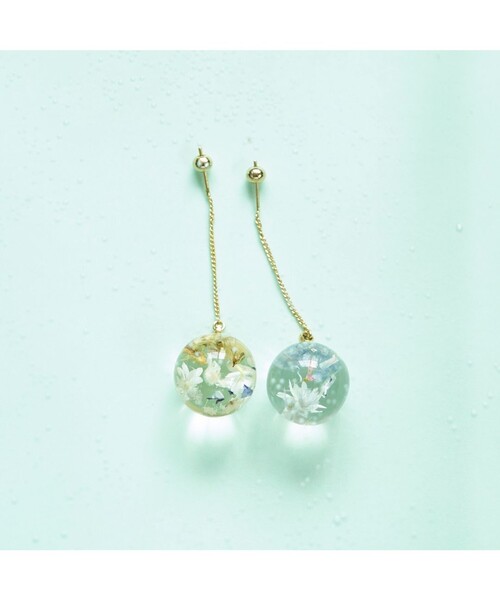 【ANEVER (アンエバー)】【Lily of the valley】DROPPED PIERCE■デザインしずくが落ちる一瞬を切り取り、空中にとどめたかのようなポエティックなピアス。アクリルビーズの中には、本物の花の一瞬がとじこめられています。Lily of the valley(スズラン)の花言葉は「幸福」「純粋」「再びの幸せ」など。同じデザインでイヤリング(品番ASAZNM0060)もご用意しています。※素材の特性上、同じ商品の中でも表現が異なります。一つ一つ異なった表情をお楽しみください。※画像はサンプルを使用しているため、実際にお届けする商品と仕様やサイズが異なる場合がございます。※画像の商品はサンプルです。実際の商品と色味、仕様、加工、サイズ、素材等が若干異なる場合がございます。※照明の関係により、実際よりもやや明るく見える場合がございます。またパソコンなどの環境により、若干製品と画像のカラーが異なる場合もございます。予めご了承くださいませ。