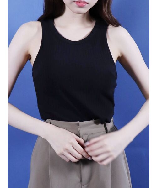 ■商品ポイント ・1枚でスタイリッシュな雰囲気が出るアメスリタンク ・パッド入りで1枚で着用可能 ・伸縮性・程よい厚みのあるテレコ素材使用で安心のホールド感 ・豊富なカラー展開で夏らしさ◎ ■オススメコーディネート クロップド丈なのでハイウエストのボトムでスタイルアップ。タイトなトップスに、ゆるめのボトムでバランスを取るのが◎ さらにシャツやジャケットのインナーとしても季節問わず使えるアイテム。 -------------- 透け感:なし 裏地:パッド付き 生地:伸縮性のある素材 -------------- テレコ素材のアメスリタンクです。 パッド付きなのでインナーも気にせず着用できます。 カラー展開も豊富で、夏らしく着用できます。 クロップド丈なのでハイウエストボトムとの相性抜群です。