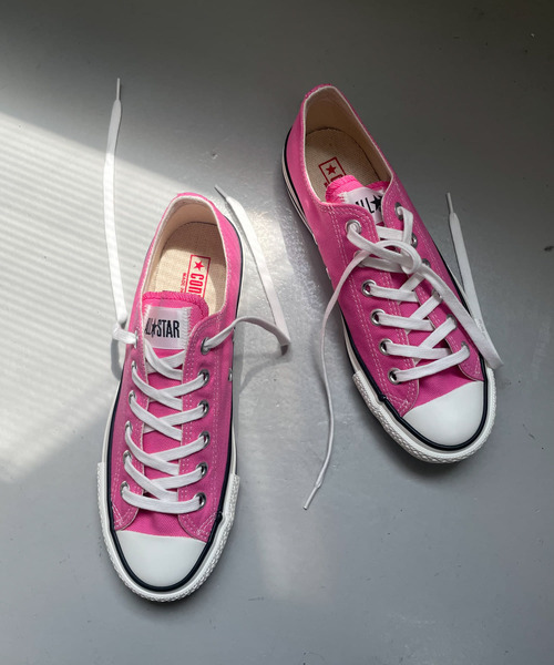 キャンバスオールスターとは異なる生成りテープ、コットンシューレース、ヒールパッチの下部分に施された「MADE IN JAPAN」の印字がプレミアム感を演出。 ホワイトのキャンバスに赤字で印されたインソールのコンバースロゴは、日本の国旗をイメージ。 【Converse(コンバース)】 オールスター、ジャックパーセルなどのスニーカーなどで知られる、1908年創業の老舗スニーカーメーカー。スニーカーでのネームバリューから、衣類、筆箱、バッグ等へ、コンバースブランドのライセンス発行も多く行っている。 【スタッフ着用コメント】 試着サイズ : 23.5 幅もちょうど良く、サイズ感もぴったりでした。 [スタッフデータ] 普段の着用サイズ : 23.5cm 足長 : 23cm 足囲 : 20cm 足幅 : 狭め ※履き心地には個人差がございますので、あくまでも目安としてご覧ください。 ※靴箱破損につきましては、商品に不良が無い場合に限り出荷させていただいております。予めご了承ください。 ※商品画像は、光の当たり具合やパソコンなどの閲覧環境により、実際の色味と異なって見える場合がございます。予めご了承ください。 ※商品の色味の目安は、商品単体の画像をご参照ください。