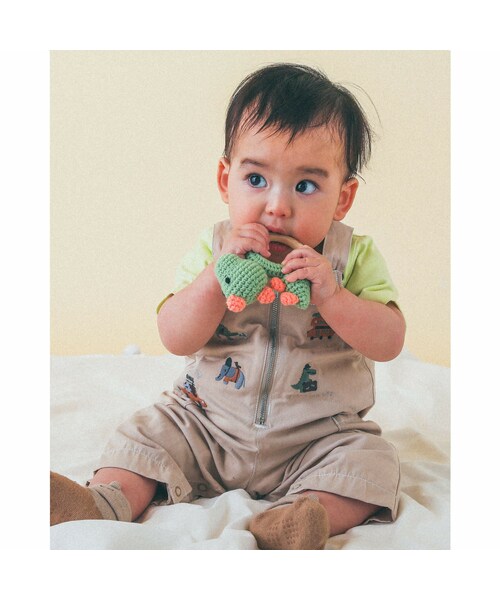 恐竜の刺繍をぎゅっと詰め込んだ男の子用オーバーオール。 デニムとベージュの2色展開で、どちらもトップスと合わせやすく、中にインするものを選ばない万能アイテム。 センターのジッパーで着脱しやすく、股下にはスナップをつけ、オムツ替えもラクラク。 オーバーオールはおなかが出ないので、活発なベビーに人気です。