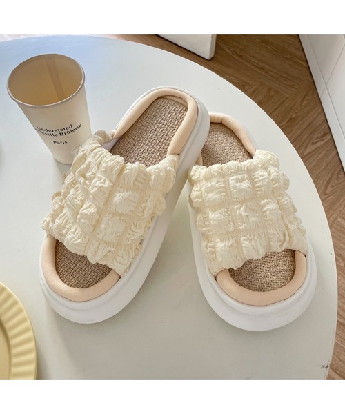 クシュっとワッフルデザインが可愛い‼︎春夏らしいルームシューズ。安定感や踏み心地にこだわりました。素足にも気持ちよいさらっとした履き心地もポイントです。※店頭及び屋外での撮影画像は、光の当たり具合で色味が違って見える場合があります。またご覧いただきますモニターや使用環境により実際の商品と多少色味が異なって表示される場合がございます。予めご了承をお願いいたします。★商品のお気に入り登録→【カートに入れる】右側の♡をクリック完売カラーの再入荷通知や、ラスト1点の通知、セールの通知も受け取ることができます。★ブランドのお気に入り登録→ブランドタグのページからお気に入りをクリック新作商品や再入荷などブランドのお得な情報を受け取ることができます。※ご注文いただいた予約商品のお届け時期の確認は、注文履歴ページより行えます。※他のキャンペーンにより、期間中に価格が変動する場合がございます。※セールは予告なく終了させていただく場合がございます。