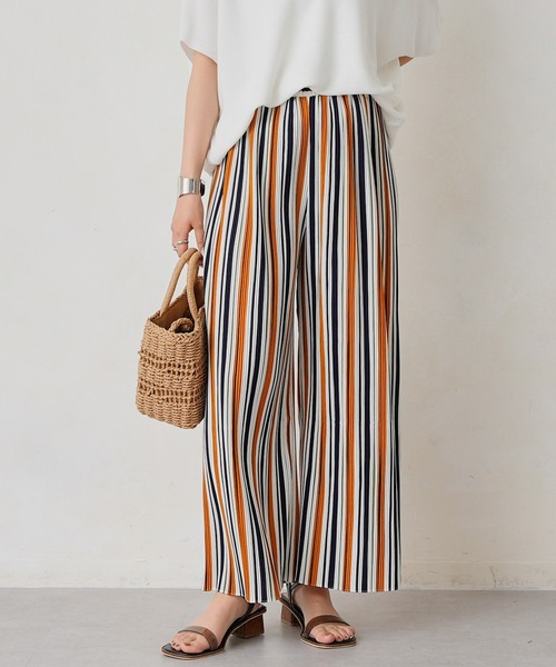 大人のこなれ感がグッと出る! コーディネートに取り入れやすいアソート柄のプリーツパンツ ■point ・すっきりとしたシルエットの楽ちんプリーツパンツ。 ・細かなプリーツが上品な印象です。 ・柄違いの3色展開 ・ウエストはゴムなのでリラックス感のある履き心地 ・足のラインを拾わないすっきりシルエット。 ・レイヤードしやすいデザイン ・夏のコーディネートにも合わせやすいさらっとした生地感 ■coordinate 雰囲気が異なる3柄展開なので、様々なテイストで合わせていただけます。 縦ラインを強調できるプリーツパンツなので、シャツワンピースやロングジレとレイヤードがオススメです。 スッキリ感が増してスタイルアップして見えます。 -------------------------------------------------- 透け感:なし 裏地:なし 伸縮性:あり 生地の厚さ:やや薄手 季節:春.夏.秋 洗濯方法:手洗い可 -------------------------------------------------- ※商品画像は着用イメージです。 光や角度により、実物と色味が異なる場合がございます。また表示のサイズ感も実物とは若干異なる場合もございますので、ご了承ください。 ※着用、お取り扱いの際は、商品についている品質表示とアテンションタグを必ずご確認ください。 -------------------------------------------------- ♡をクリックでお得な情報をお知らせいたします。 <商品お気に入り登録> お気に入りアイテムのお値下げ・再入荷・在庫ラスト1点など通知を受けることができます。 <ブランドお気に入り登録> Chez toiの新商品・再入荷・SALE・クーポン配布などお得な情報を受けることができます。 -------------------------------------------------- リラックススタイル/ストレスフリー/オンオフ/ベーシック/デイリー/体型カバー/大人カジュアル/ママコーデ/ お出かけスタイル/細見え/抜け感/キレイめ/ワイドパンツ/着痩せ/デザインパンツ/ロングパンツ/低身長/華奢見え/シンプル/淡色カラー/プリーツパンツ/柄パンツ/お仕事使い/ドット/華奢見え/レイヤードコーデ/ストライプ/ゆるシルエット/ルーズシルエット/マリンスタイル/夏コーデ/ママファッション