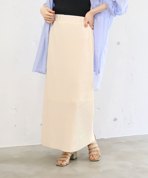 ビビッドカラーが春夏らしいロング丈のプリーツナロースカートです。細プリーツデザインが程よくキレイめな印象をつくるので、旬のジレベストやシアートップスとも好相性な1枚。もちろんビッグTシャツやグルカサンダルと合わせたカジュアルスタイルもオススメです。バックスリット入りで足さばきもよく、自然と抜け感が生まれます。またウエストは総ゴムなので、イージーな着心地もポイントです。※実店舗と発売時期が異なることがございます。あらかじめ御了承ください。※撮影場所やお使いのモニター環境により若干お色味が異なる場合がございます。※お取り扱いに関しましては、商品に付属のアテンションタグをご覧ください。※サイト上のカラー名と、お届け商品に記載されているカラー名が異なる場合がございます。※生産時期により色・素材・サイズ感など多少異なる場合がございます。予めご了承ください。サイズウエスト【60cm】ヒップ【46cm】スカート丈【87cm】※こちらの商品はワンサイズのみとなります。【お買い物をより楽しんで頂くために】▼商品のお気に入り登録♡のクリックで商品のお気に入り登録が完了!完売カラー再入荷のお知らせ、ラスト1点のお知らせ、セールのお知らせを受け取ることができます。▼ブランドのお気に入り登録新商品や再入荷のお知らせ等、いち早くブランドのお得な情報を受け取ることができます。