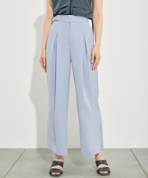 テロっと素材で履きやすい、キレイめパンツ●合わせて欲しい!●セットアイテムは下記品番で検索くださいブラウス:162300009■デザイン落ち感のある素材を最大限に活かしたワイドシルエットのキレイめパンツ。ウエストの内側にホックを2つ付けているので、きれいにウエストマークしていただけます。大きく取ったタックや裾のサイドスリットがデザインポイントとなり、万能に着回しのできるパンツです。■素材上品な光沢と落ち感が特徴の上質なトリアセテートの生地。SAXはPUBLIC TOKYOオリジナルカラーで展開しています。1枚で透けにくいバックサテンでこれからの季節に1枚でさらっと着用いただけます。■お手入れ方法手洗いでの洗濯が可能です--------------------------------------------裏地:なし光沢感:なし透け感:なし伸縮性:あり厚さ:普通--------------------------------------------