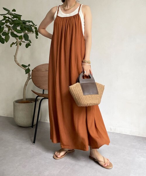 ■2022 SPRING & SUMMER ITEM■後ろ姿が主役になってくれる!キャミワンピゆったりと広がるAラインのシルエットに、ギャザーデザインで可愛らしさをプラス。華奢な肩紐は、バッククロスのデザインで後ろ姿も抜かりない印象に。また、長さ調節可能のアジャスター付きがうれしいポイントです。ヘルシーにタンク合わせや羽織りアイテムなど、着こなし次第でロングシーズン着られるキャミワンピは、今抑えておいて間違いなしのアイテムですよ!- POINT -・Aラインシルエット・肩紐で長さ調節可能・着こなし次第でロングシーズン◎--------------------------------洗濯:手洗い不可能透け感:なし 裏地: あり伸縮性: なし--------------------------------【 ♡ をクリックでお得な情報をお知らせいたします 】〈 商品のお気に入り登録 〉 お気に入りアイテムのお値下げ・再入荷・在庫ラスト1点など通知を受けることができます。〈 ブランドのお気に入り登録 〉DOUDOUの新商品や再入荷、セール、クーポン配布などお得な情報を受けることができます。--------------------------------------※ 生産の都合上、お届け時期が前後する場合がございます。※ 掲載画像の商品の色味は、 撮影場所や光の当たり具合などにより色味が異なって見える場合がございます。 また、お客様のお使いのPC・スマートフォン等のモニター環境などにより色味が異なって見える場合がございます。予めご了承の上ご注文ください。 ※ 着用、お取り扱いの際は、商品についている品質表示とアテンションタグを必ずご確認下さい。 #dou_live220526
